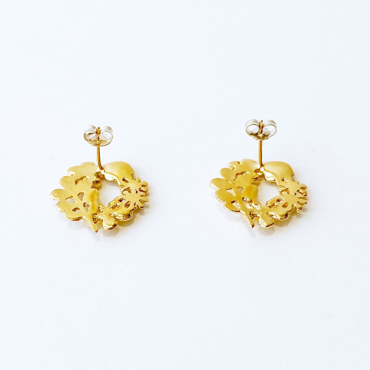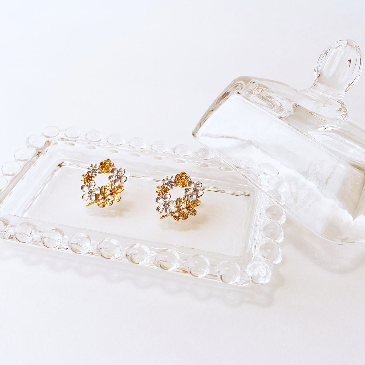 野原の草花で編んだ小さなリースをイメージした、可愛らしいスタッドピアスです。