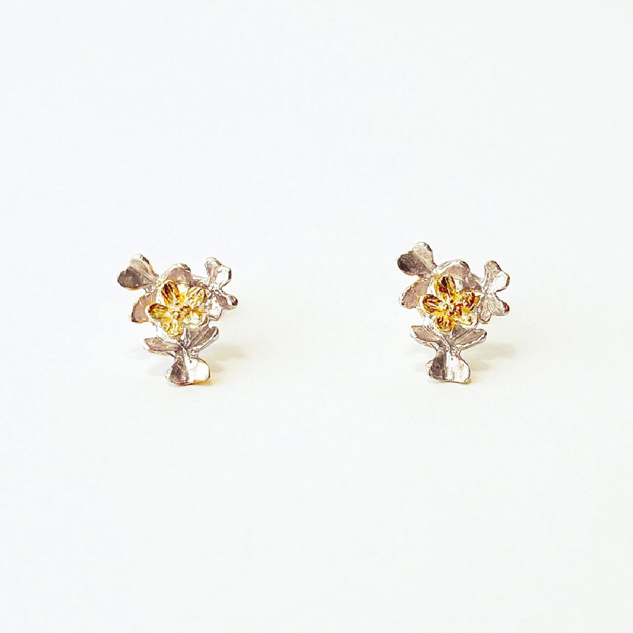 道の端に咲く、可憐なカタバミの葉と花をモチーフにしたピアスです。