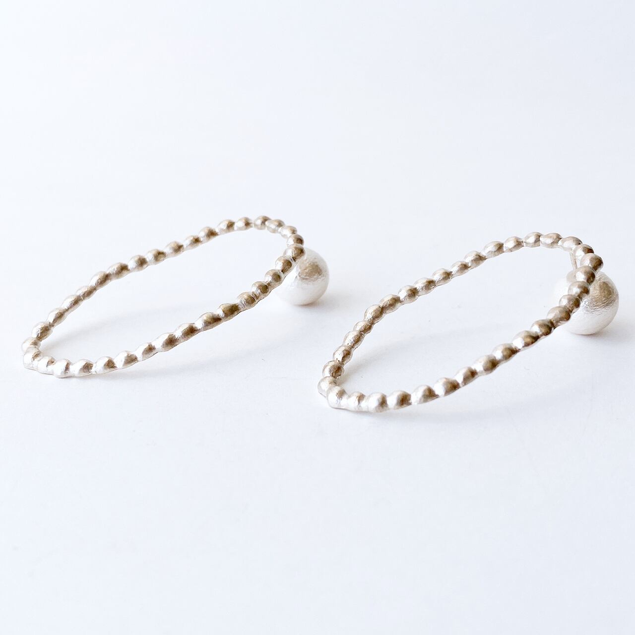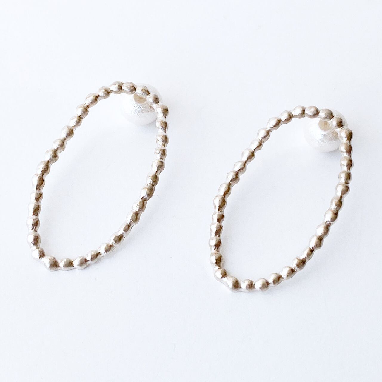 小さな丸い粒を集めた、少し不揃いな楕円形が可愛らしいピアス。
