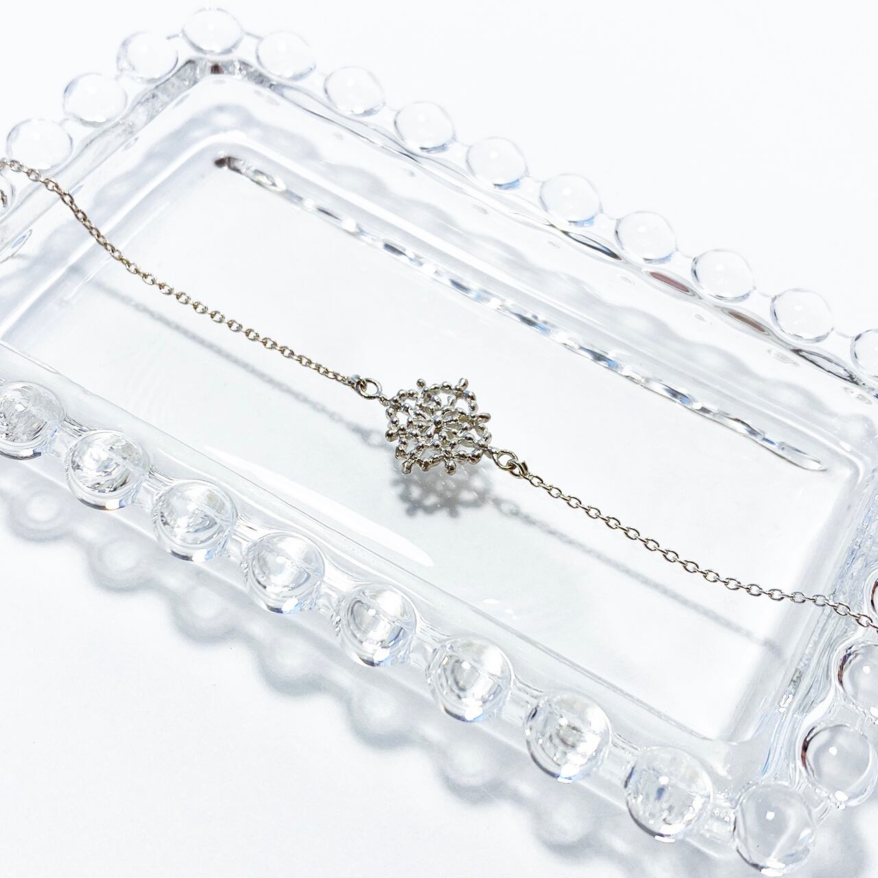 繊細なタティングレースで、銀糸を編んだイメージで制作したシリーズです。