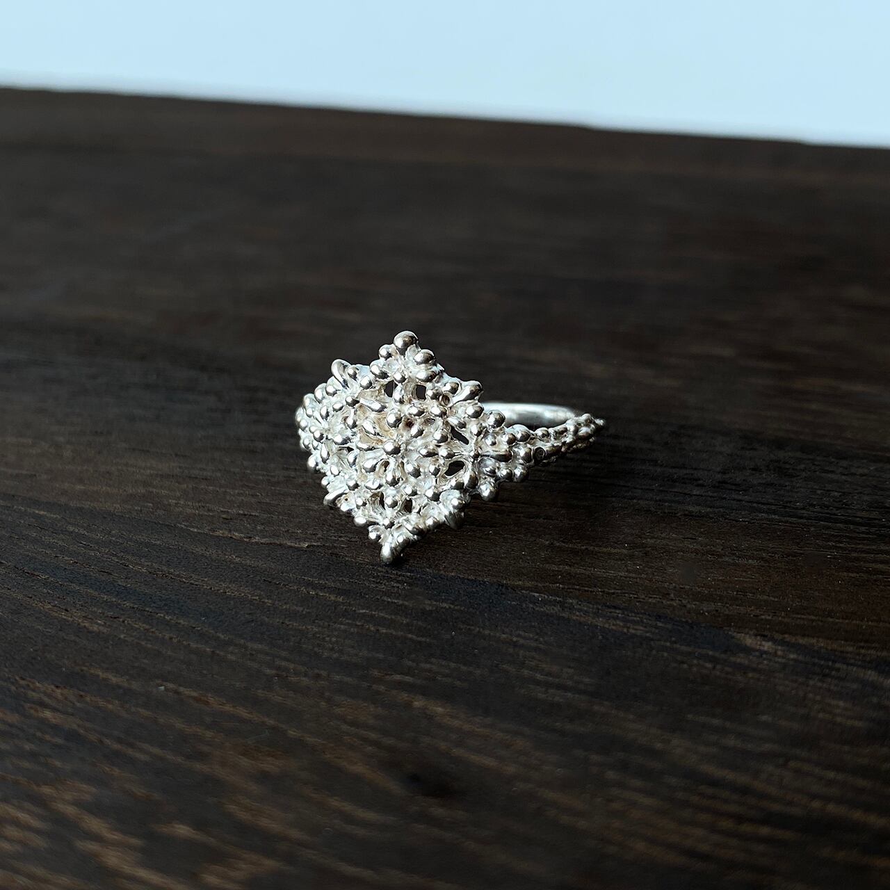 繊細なタティングレースで、銀糸を編んだイメージで制作したシリーズです。