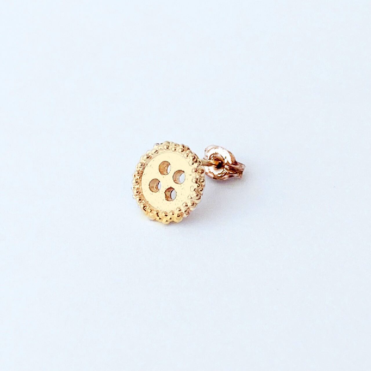 そのままでもお使い頂けますが、ボタンを縫い付ける時のように糸を通して固定すると、手芸品のボタンのようなカラーバリエーションを楽しめます。(ピアスの裏側で固結びするなどして糸を固定してくださいませ)