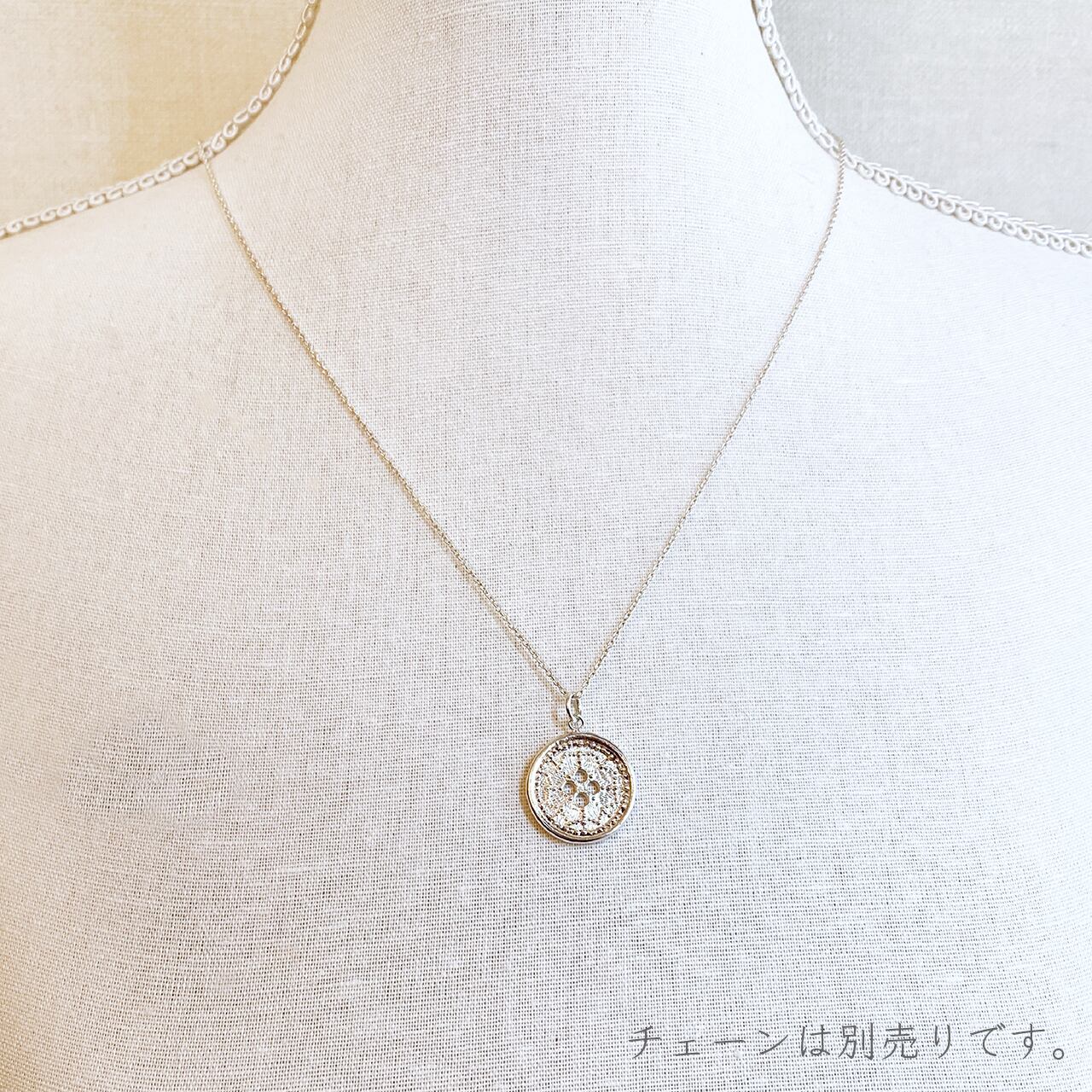 大きめのボタンのネックレスチャーム。
