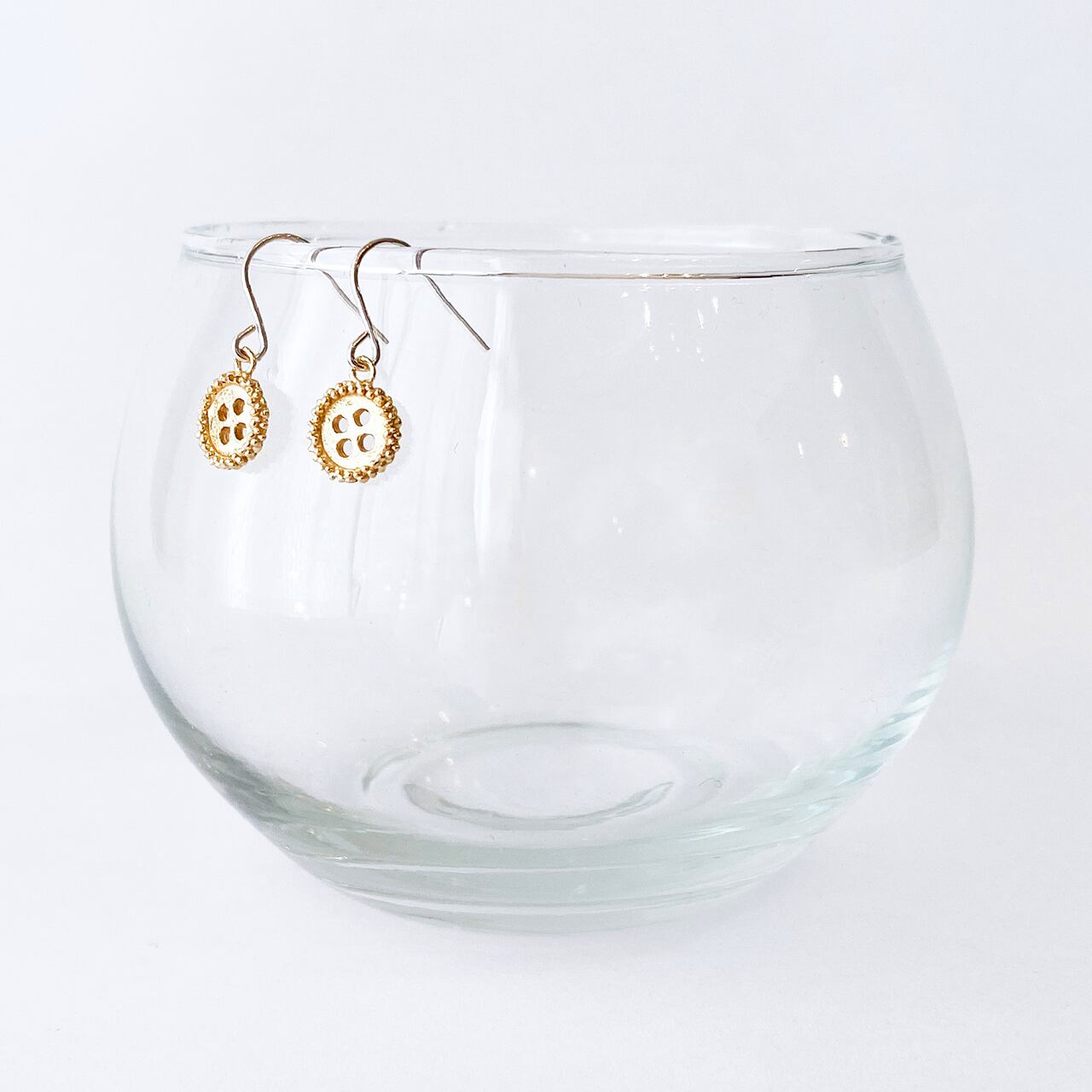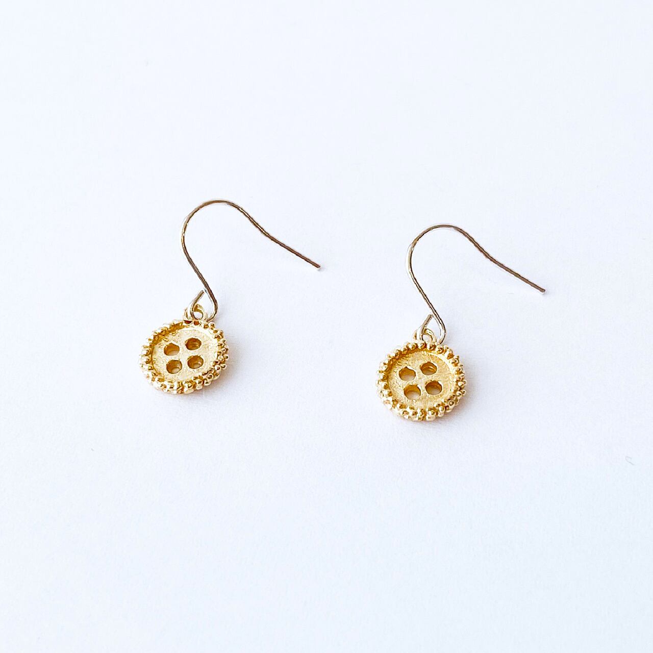 可愛らしいボタンのフックピアス。手芸が好きな方へお勧めです。